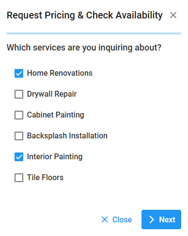 Customers can request pricing and availability for any of your services. Each service has one or more questions for customers to answer to help you better understand their needs.